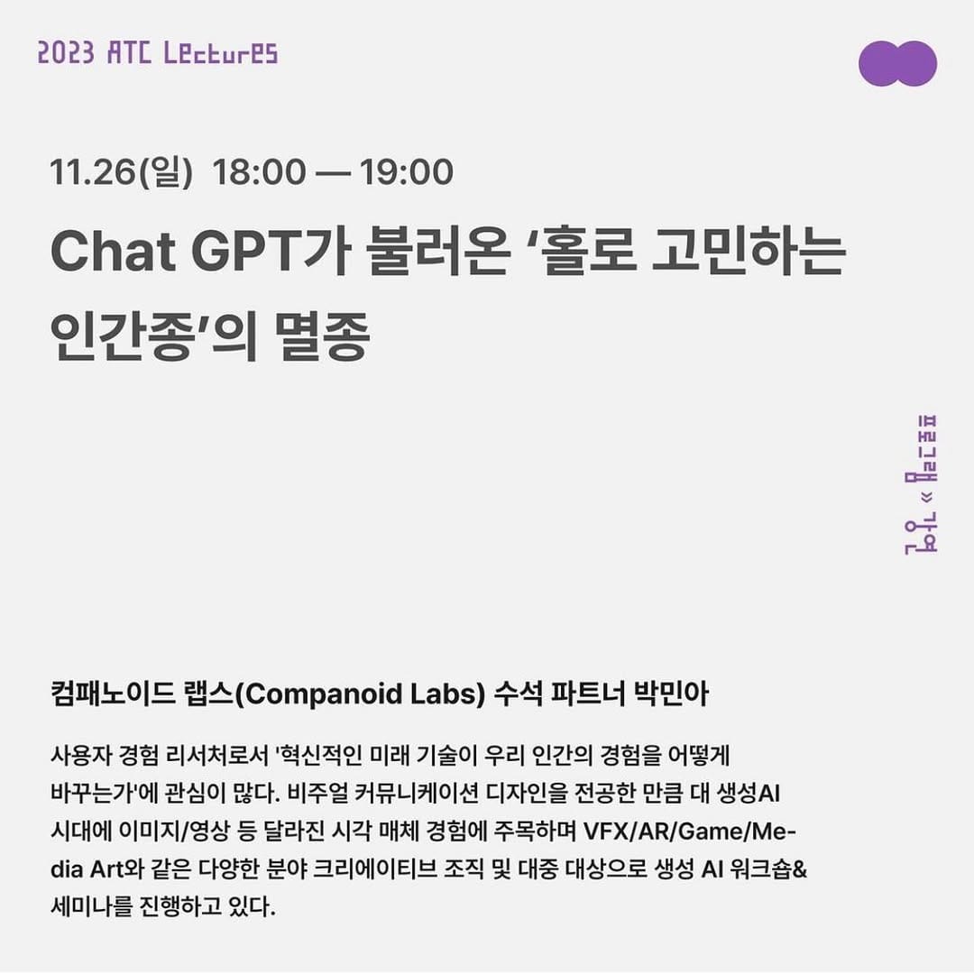 감사한 인연으로 서강대학교 2023 Art & Technology Conference 《신중한 무법지대 미친 안전지대》에서 짧은 강연을 진행하였습니다.